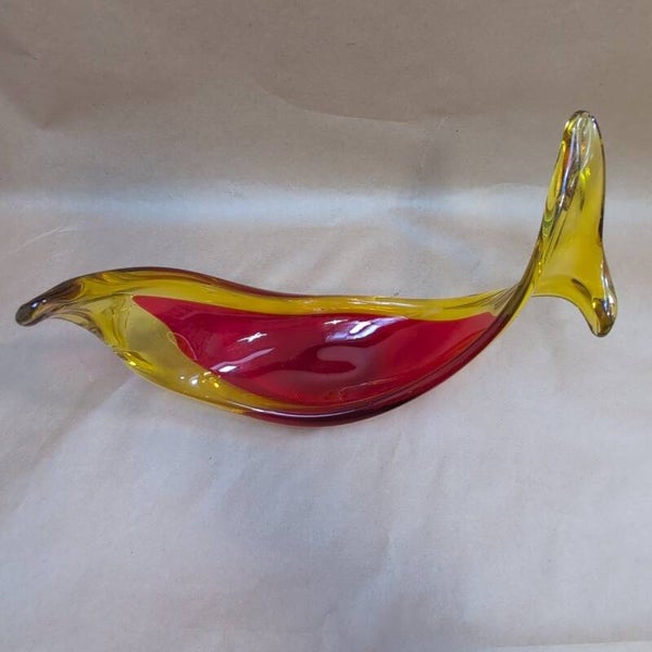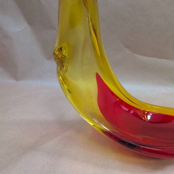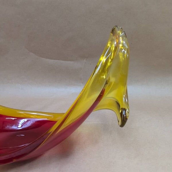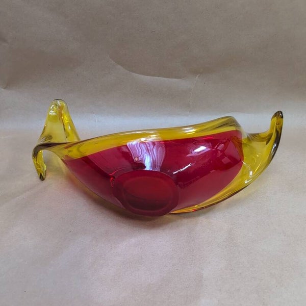 Vintage Murano Selenium Red And Yellow Glass Sculpture Bowl Dish Centre Piece
