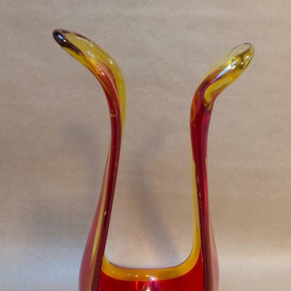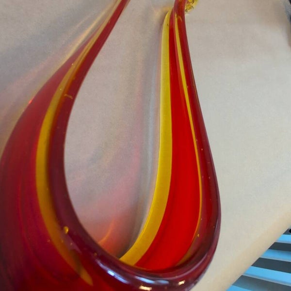 Vintage Murano Selenium Red And Yellow Glass Sculpture Bowl Dish Centre Piece Uv