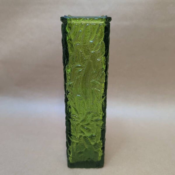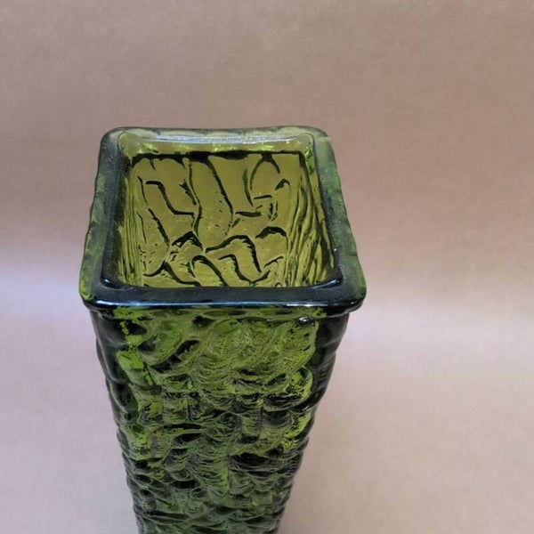 Mid Century George Davidson Green Bark Vase Brama Luna Vintage Whitefriars Style