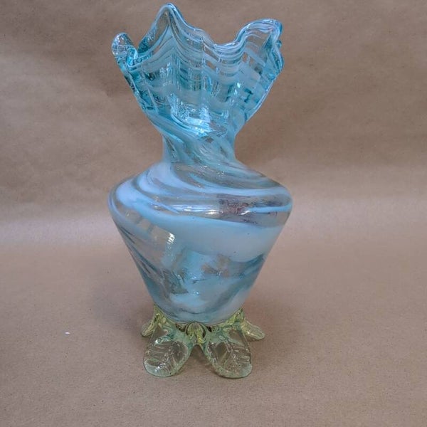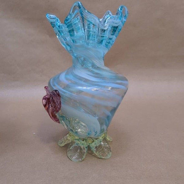 Rare Antique Glass Victorian Opalescent Uranium Hand Blown Vase UV Glow