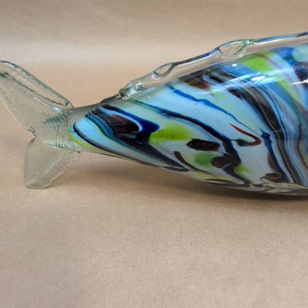 Vintage Romanian Glass Multi Coloured Hand Blown Fish Sculpture Figurine 11.5" J