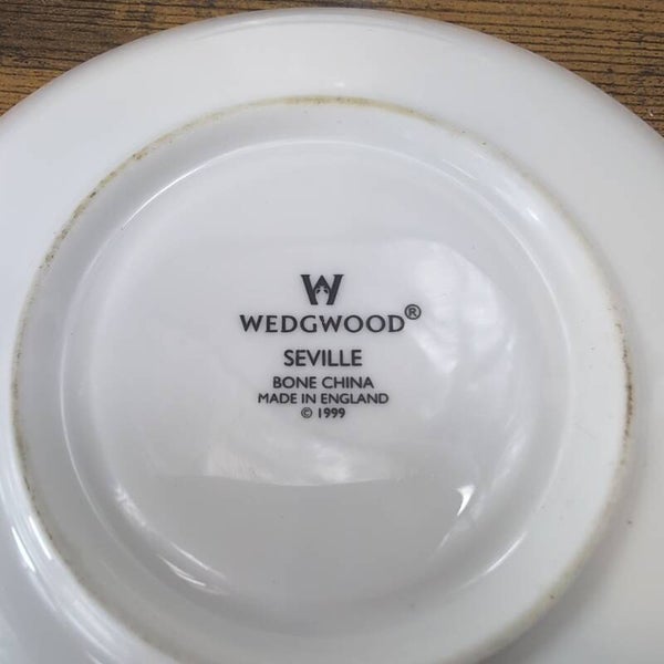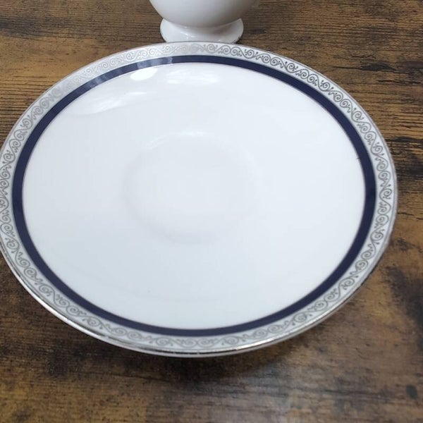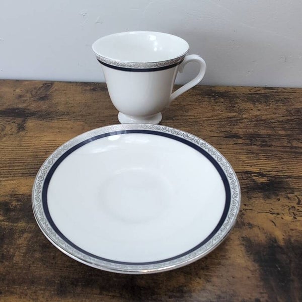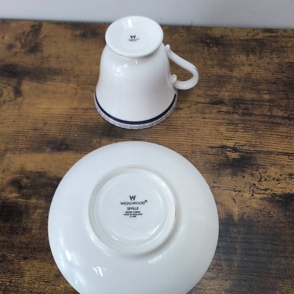 Vintage Wedgwood Bone China Blue White Silver Seville Cup & Saucer